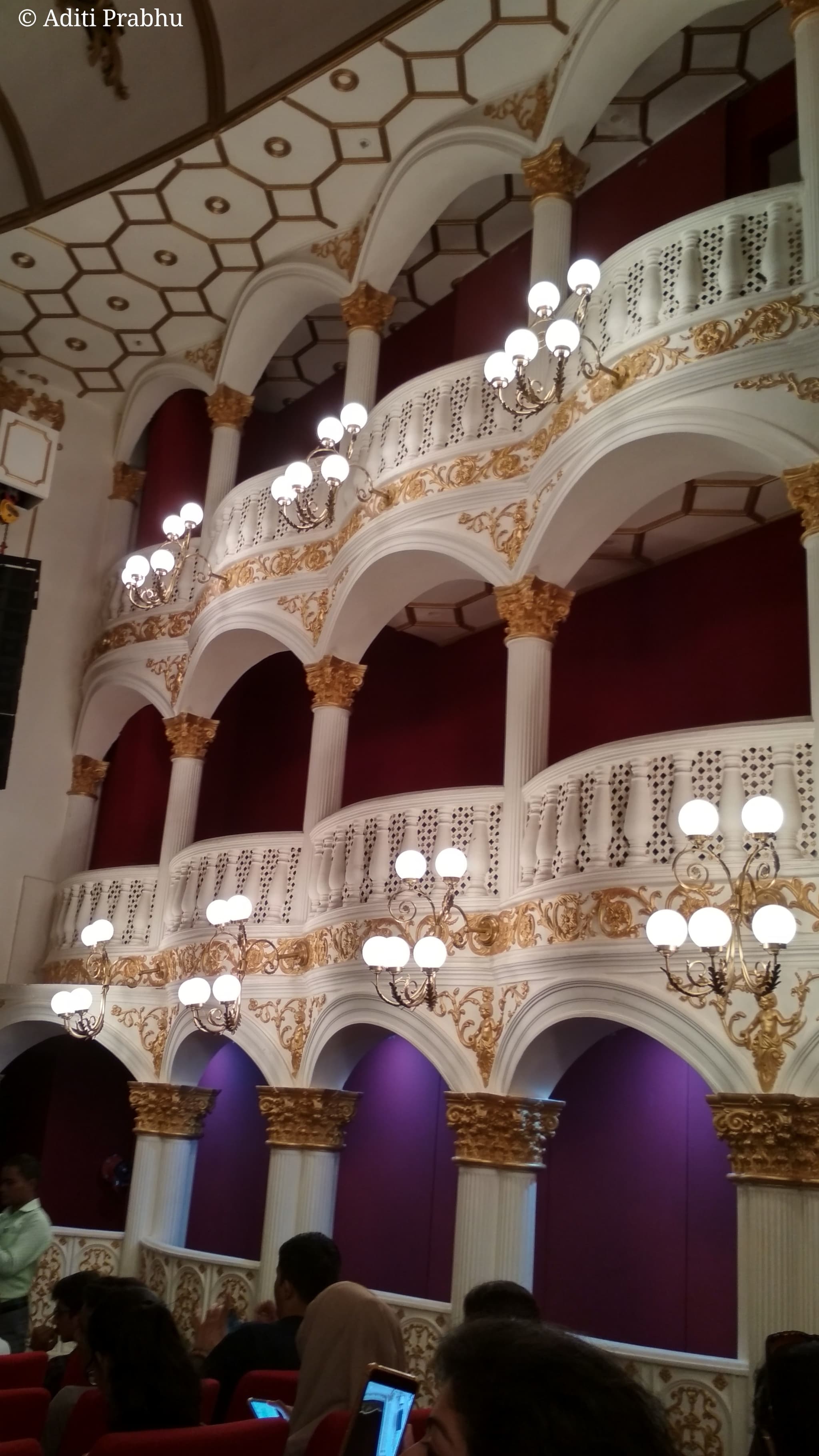 In fact, the Royal Opera House looked like a scene straight out of an old English novel with a classic entrance, a long foyer with a stunning ceiling adorned with beautiful chandeliers, walls filled with paintings, and decorated with stained glass. As I slowly entered the main hall it became even more mesmerizing with red chairs, carved ceiling, stunning balconies, and a huge stage. The only thing that was missing were men in those formal English outfits and women in flowing gowns. How I wish even that could come true.